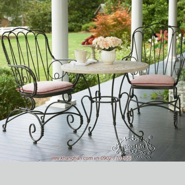 Bàn ghế sân vườn bằng sắt mỹ nghệ đang bắt đầu trở nên phổ biến hơn qua mỗi năm. Nhiều người đã có đủ đồ nội thất bằng gỗ tếch hay đá và bây giờ đang chuyển sang sắt một loại vật liệu dẽ tạo hình dáng cho chắc chắn và duyên dáng hơn, loại bảo trì thấp hơn của ngoại thất sân vườn. Bàn ghế trong vườn làm bằng sắt rèn có thể tạo một ấn tượng lâu dài đến những người khách viếng thăm.