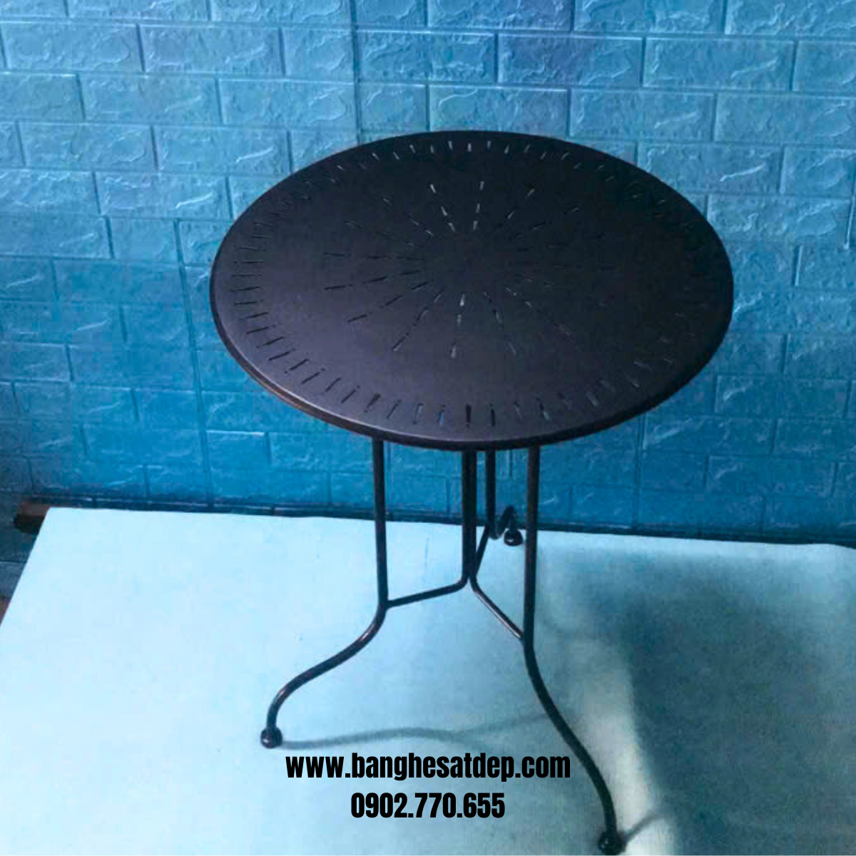 - Thiết kế nghệ thuật: Mặt bàn từ sắt tấm cắt CNC và chân sắt uốn lượn tạo nên một tác phẩm nghệ thuật, làm đẹp cho không gian quán.