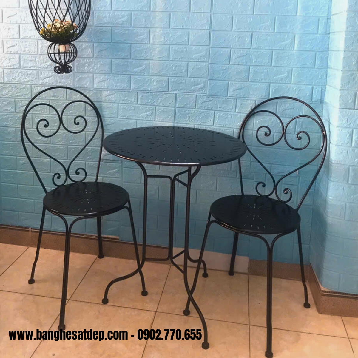 Bàn ghế sắt_ Bàn 60 x 70cm _ Ghế 38 x H1 (45), H2(92)cm