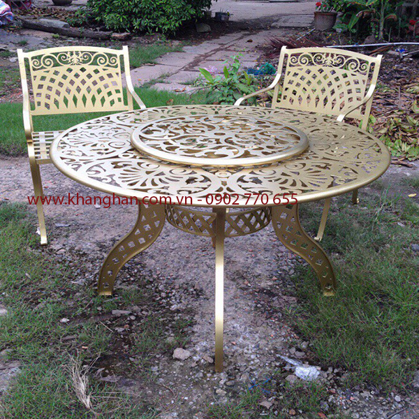 Bàn ghế sắt mỹ thuật cho sân vườn cùng họa tiết CNC