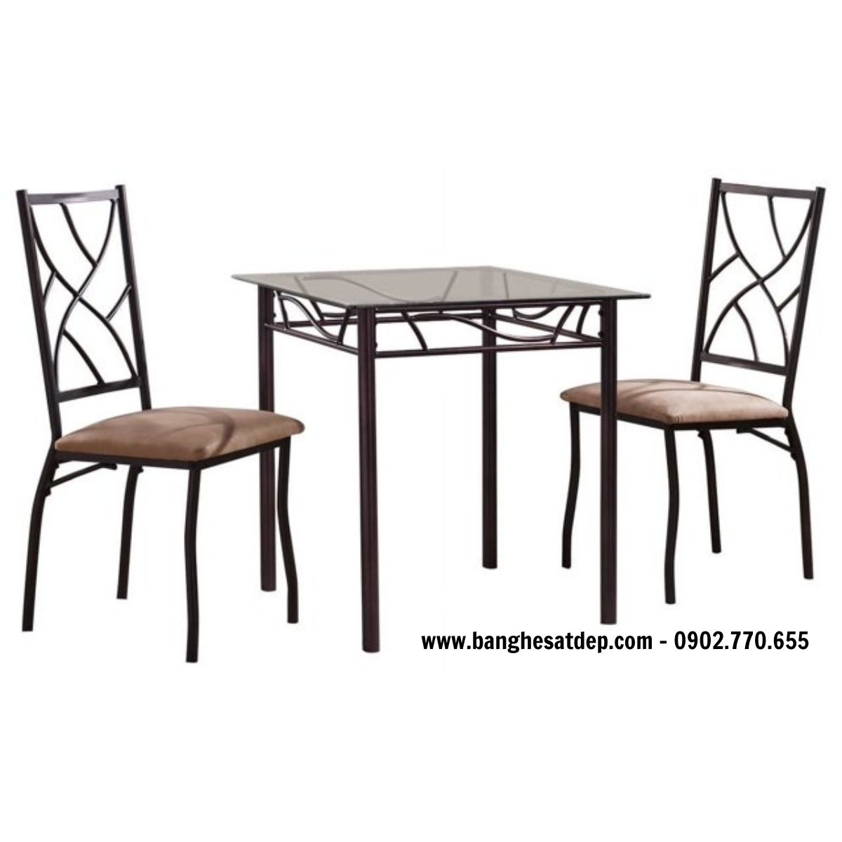 Đẳng cấp và tinh tế - Bộ bàn vuông 2 ghế với thiết kế đơn giản và sang trọng. Bàn được làm từ sắt vuông 20x20 nhẹ nhàng và vững chắc, kết hợp với mặt kính cường lực trong suốt để tạo nên không gian lịch lãm. Khung ghế uốn từ sắt phi 16, thanh nhã và đường xương phi 12 kết hợp duyên dáng.