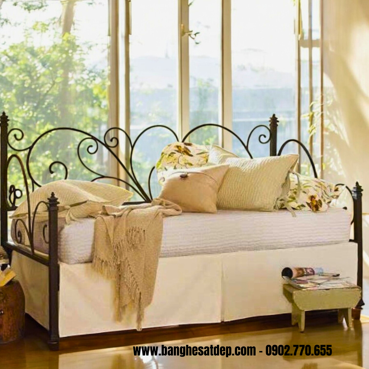 Sofa Bed bằng sắt rèn mỹ thuật mang đến vẻ đẹp thanh lịch và tinh tế nhờ các họa tiết rèn uốn mềm mại và công phu, tạo điểm nhấn thẩm mỹ độc đáo cho không gian sống.