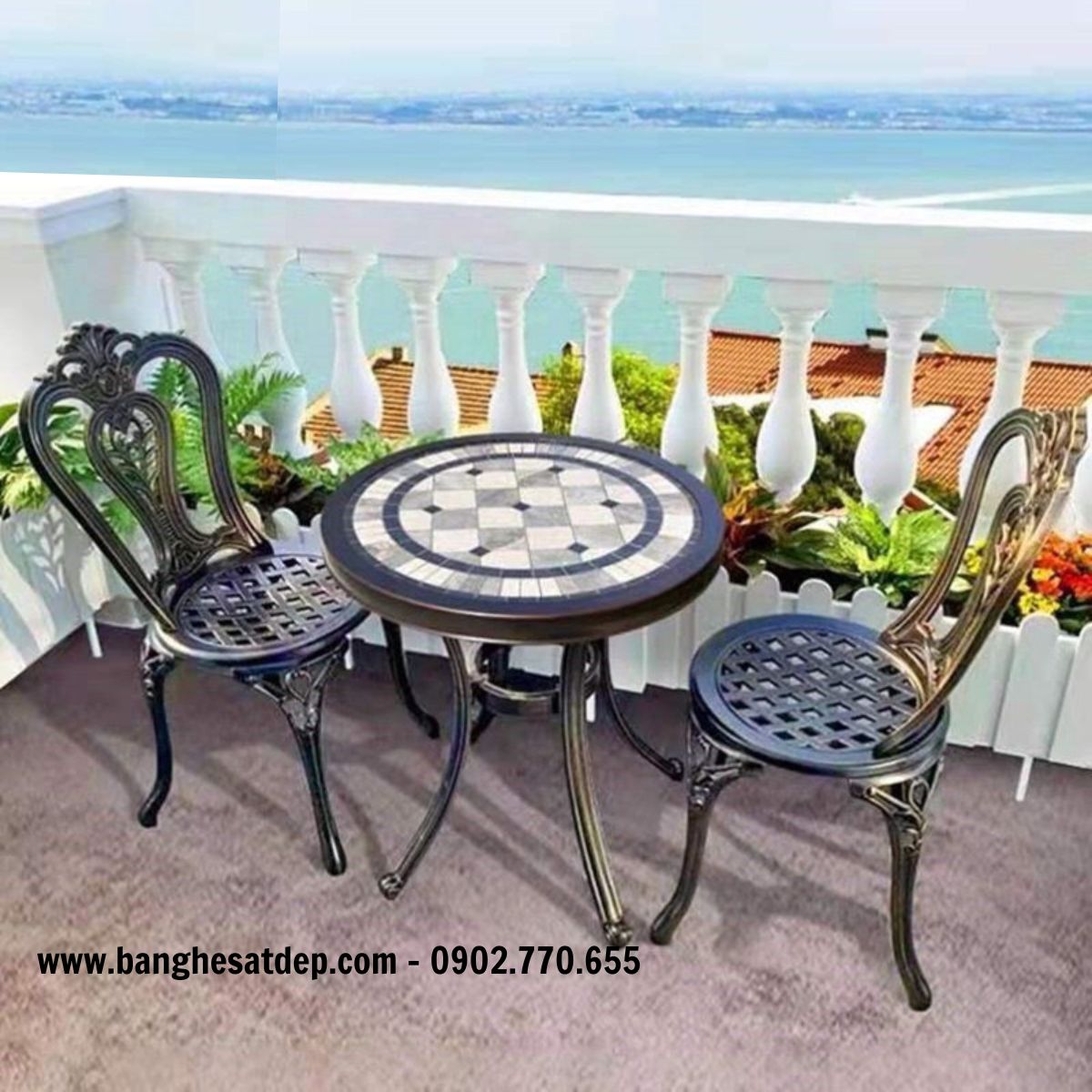 Bộ bàn tròn 2 ghế nhôm đúc nhập khẩu sơn tĩnh điện ngoài trời