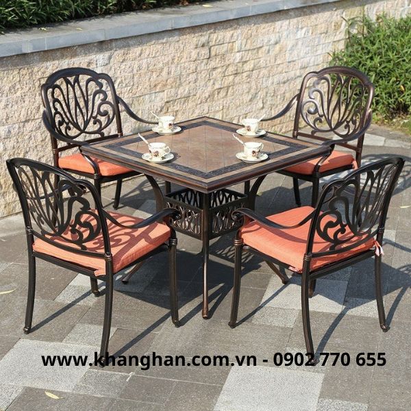 Bộ bàn vuông mặt gốm 4 ghế sân vườn KH23- B27.4G13